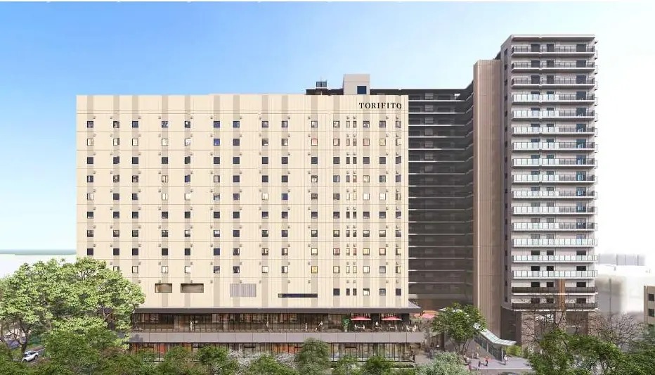 最高高さは住宅棟19階/59.935m、ホテル棟13階/54.700m、立体駐車場16階/約49m。延床面積40,370㎡。