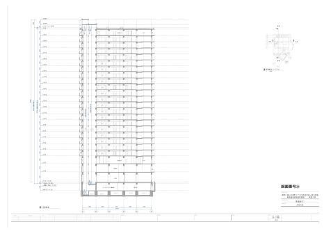 パラペット高さ | 平均GL | 83.350m | 中央の寸法「最高の高さ」(=建築物高さ)、「パラペット天端」。 |