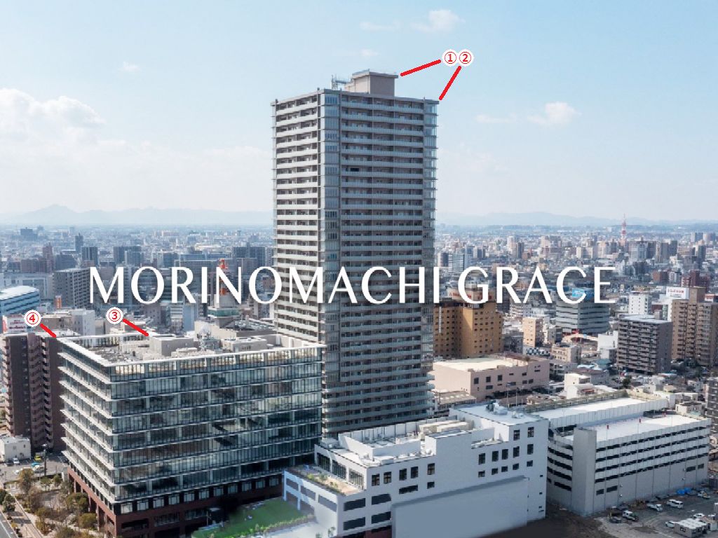 <p>右側/杜の街グレース岡山ザ・タワー ①最高高さ ②主要部高さ<br>