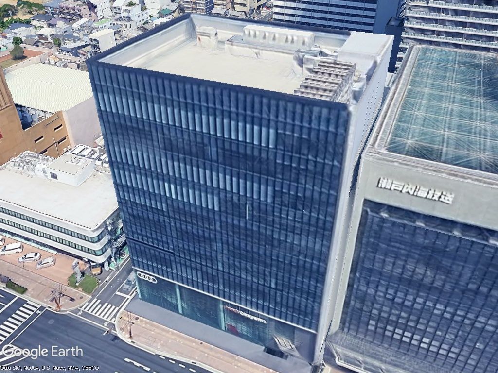 <p>Google Earthと同様に航空観測による<a href="https://www.mlit.go.jp/plateaudocument02/tocC/tocC_03/tocC_03_02/tocC_03_02_03/">3D計測の建物高さ</a>を表示できるが、小さい棟屋やパラペットの高さは反映されづらいほか、周囲の地形と建物の関係もGoogle Earth